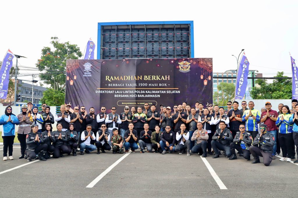 KANALKALIMANTAN.COM, BANJARBARU – Harley Davidson Club Indonesia (HDCI) Banjarmasin bersama Direktorat Lalu Lintas Kepolisian Daerah (Ditlantas Polda) Kalimantan Selatan (Kalsel) menggelar kegiatan berbagi takjil kepada masyarakat yang melintas di Jalan A Yani Km 21, Banjarbaru, Sabtu (14/3/2026) petang.