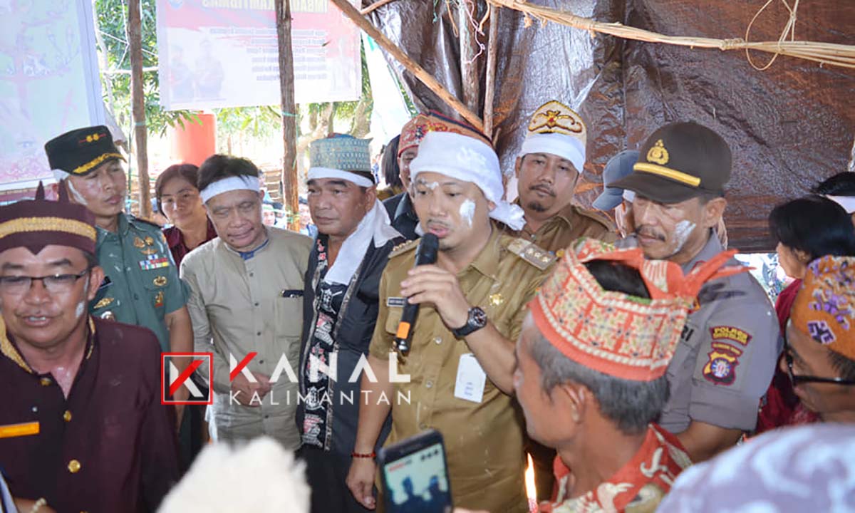 BUNTOK, Bupati Barito Selatan (Barsel) Eddy Raya Samsuri menghadiri acara ritual keagamaan Hindu Kaharingan Wara Ngariring, di Desa Kalahien, Kecamatan Dusun Selatan (Dusel).