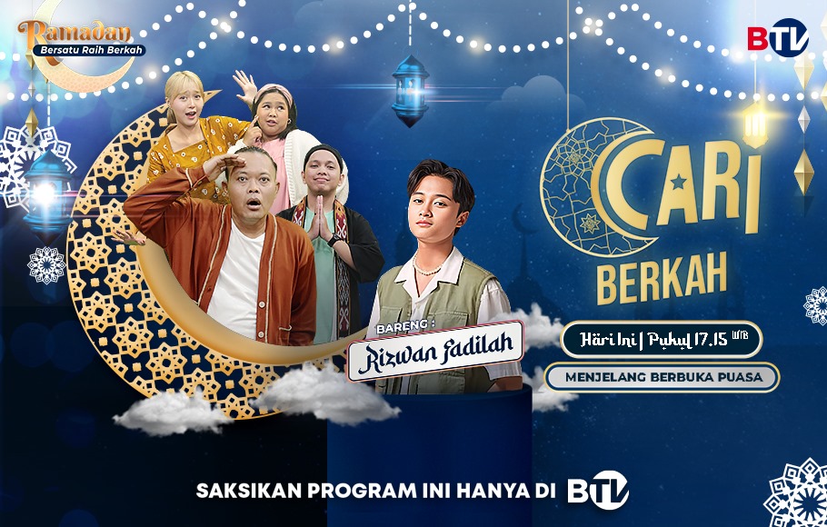 Nantikan Cari Berkah sore ini, Rabu, 20 Maret 2024 pukul 17.15 WIB hanya di BTV yang akan menghadirkan bintang tamu spesial Rizwan Fadilah.