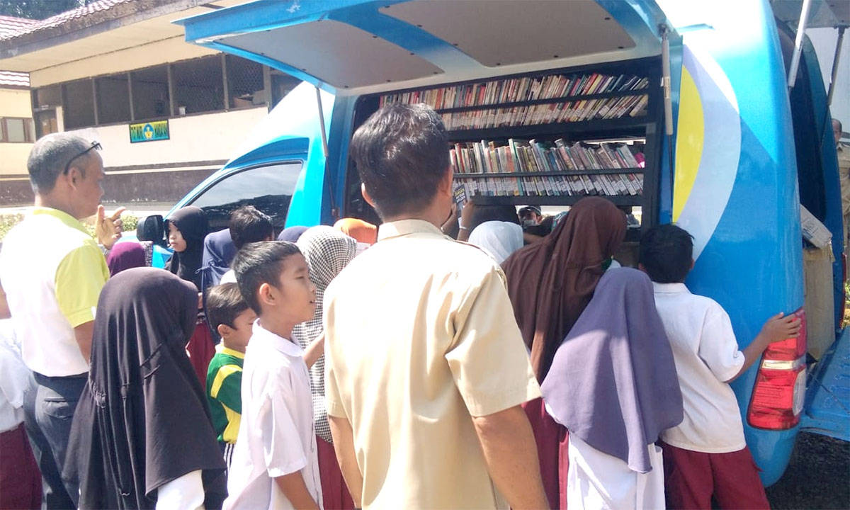 BANJARMASIN, Roadshow mobil perpustakaan keliling (Pustling) Dispersip Kalsel ke wilayah Hulu Sungai Tengah (HST). Dinas Perpustakaan dan Kearsipan (Dispersip) Kalsel berkunjiung ke daerah sekaligus menyalurkan bantuan buku dari Yusuf Agency.