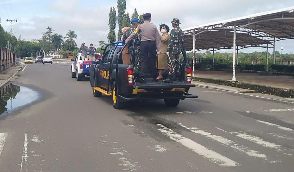 Kapolres bersama Dandim1012/BTK dan Wabup Barsel ikut keliling melakukan pemantaun penyemprotan disinfektan. Foto: digdo