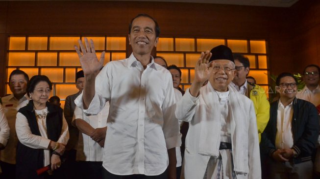 Capres dan Cawapres nomor urut 1 Jokowi-Ma’ruf Amin panen suara pemilih Pilpres 2019 di Kabupaten Boyolali, Jawa Tengah, Rabu (17/4/2019).