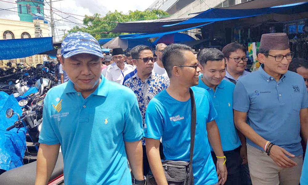 Sekitar 15 menit dirinya melanjutkan menyapa pendukung yang sudah menunggu di depan Toko Permata Pancar Indah Putera. Didampingi H Martinus, Sandi Uno mengatakan akan meningkatkan ekonomi di daerah ini.