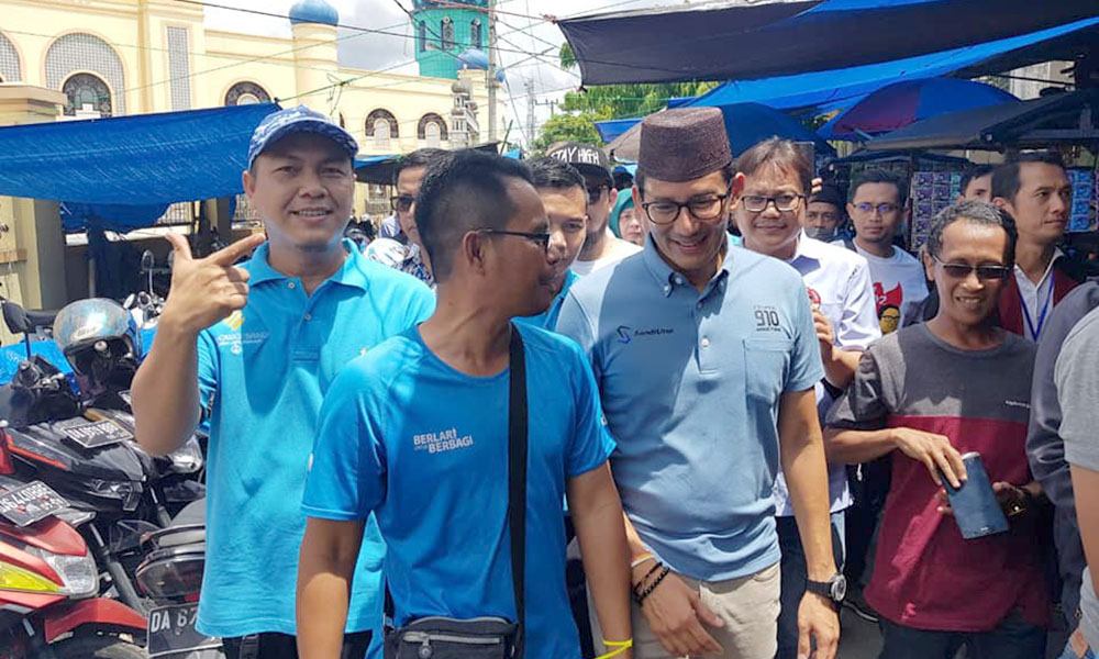Sekitar 15 menit dirinya melanjutkan menyapa pendukung yang sudah menunggu di depan Toko Permata Pancar Indah Putera. Didampingi H Martinus, Sandi Uno mengatakan akan meningkatkan ekonomi di daerah ini.