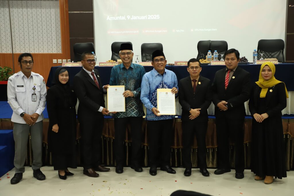 Penetapan ini berdasarkan pada Surat Keputusan (SK) Komisi Pemilihan Umum Nomor 4 tahun 2025, tantang penetapan Calon Bupati dan Wakil Bupati HSU terpilih tahun 2024.