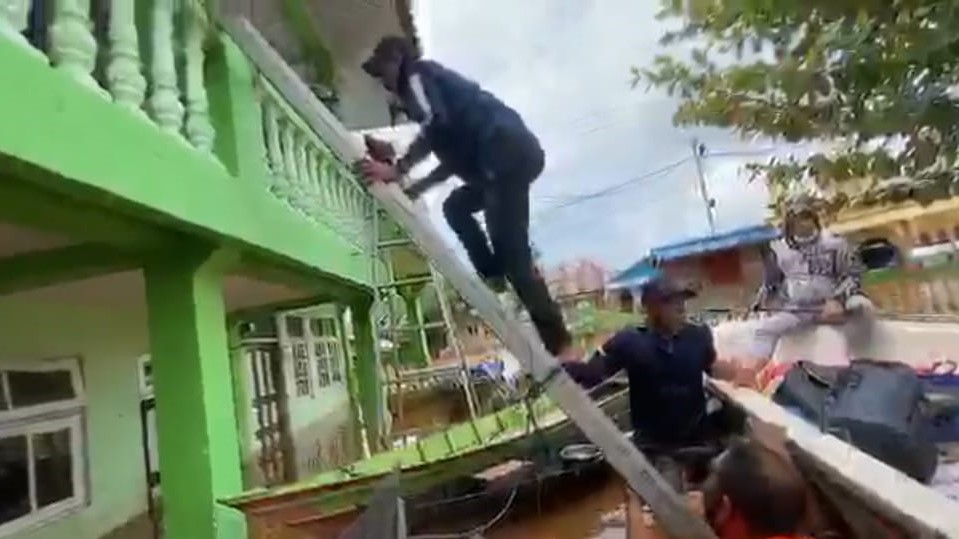 Bahkan, di sebuah lokasi, Saidi menyempatkan diri lagi mengevakuasi sejumlah warganya. Dia sendiri yang berjalan dan menerobos banjir mendorong perahu berisi sejumlah warganya yang dievakuasi.