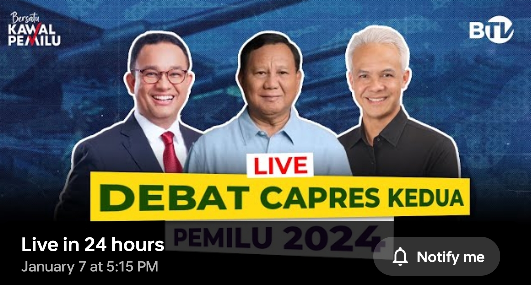 Saksikan Debat Capres Kedua Pemilu 2024