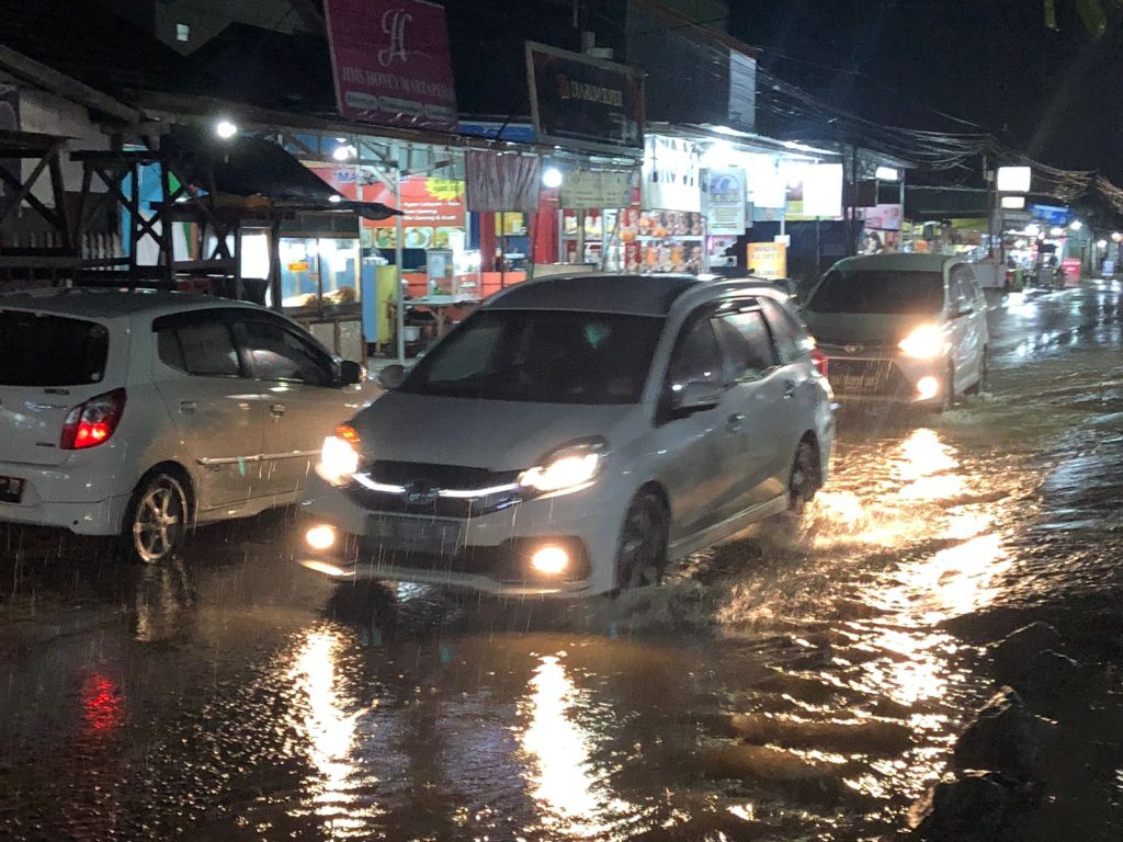 “Saat mau Maghrib tadi air makin naik selutut kaki, hampir mau masuk ke halaman warung saya, mengalirnya dari simpang tiga di ujung sana,” ujar Lesman, pedagang bakso di pinggir Jalan Sekumpul saat di wawancarai, Rabu (22/2/2023) malam.