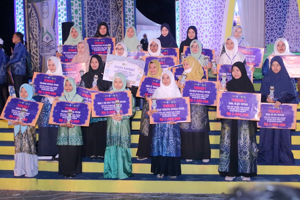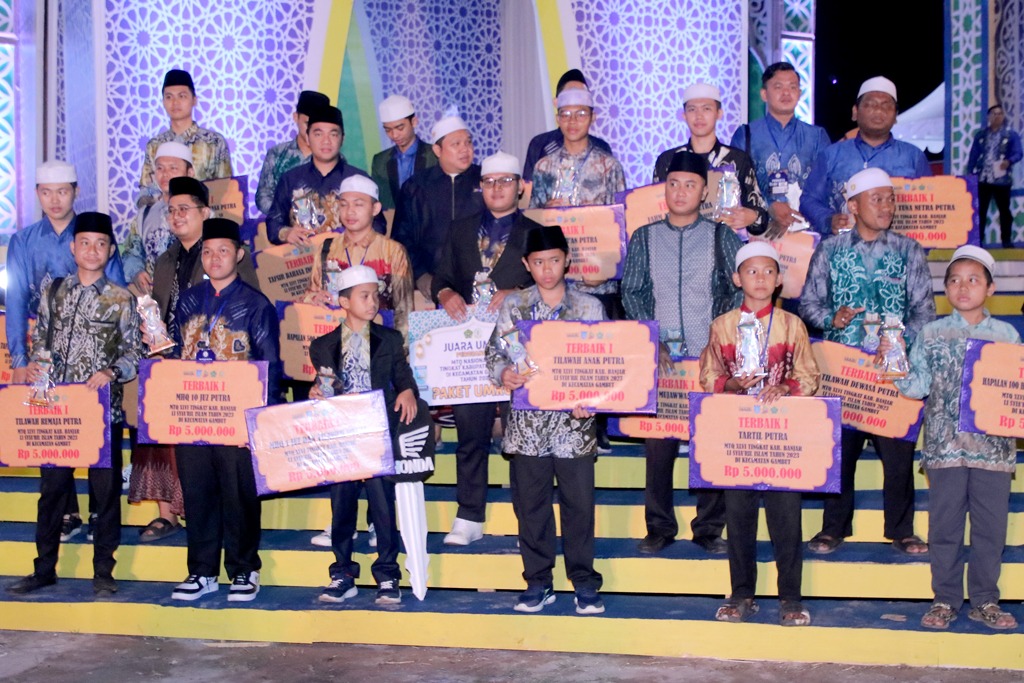 Juara umum perseorangan cabang Hifzil Quran 20 juz atas nama Asraful Azkia, juara favorit M Fikri Hanif dari Kecamatan Kertakhanyar, sedangkan juara pawai taaruf diraih Kecamatan Sungaitabuk.