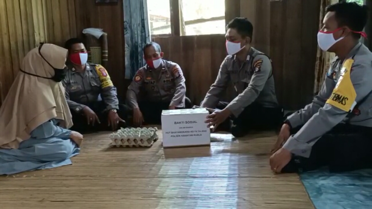 Sambut HUT Bhayangkara ke-74, Polsek Kahayan Kuala Bagikan Sembako