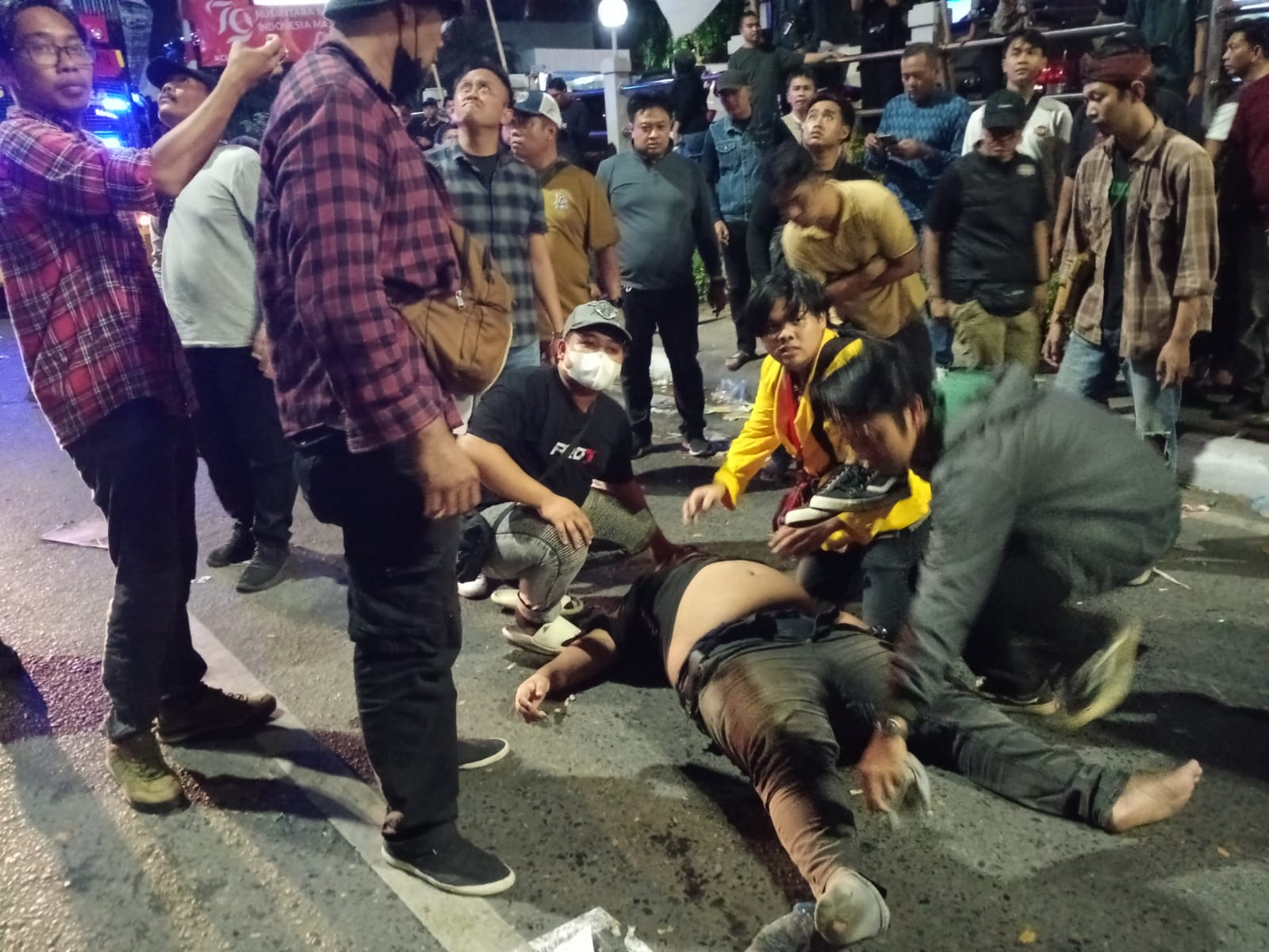 Ricuh mahasiswa vs polisi yang terjadi menyebabkan beberapa mahasiswa luka dan pingsan, sehingga harus mendapat penanganan medis.