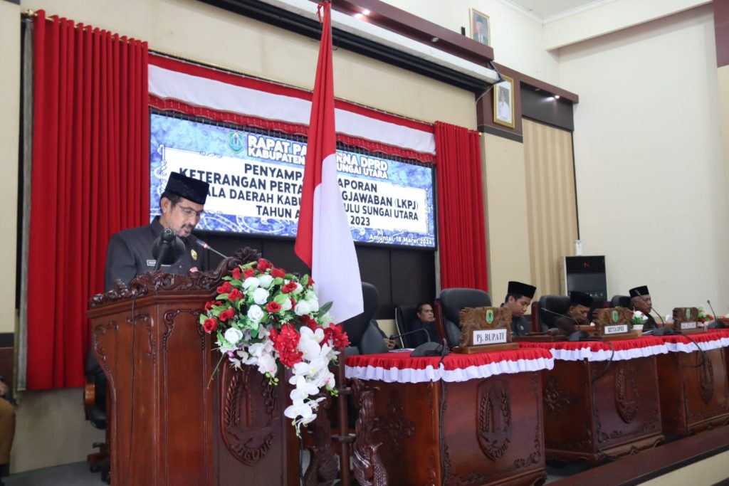 Hal itu diungkapkannya pada rapat paripurna DPRD HSU penyampaian Laporan Keterangan Pertanggungjawaban (LKPj) Kepala Daerah Kabupaten HSU tahun anggaran 2023, Senin (18/3/2024) siang.