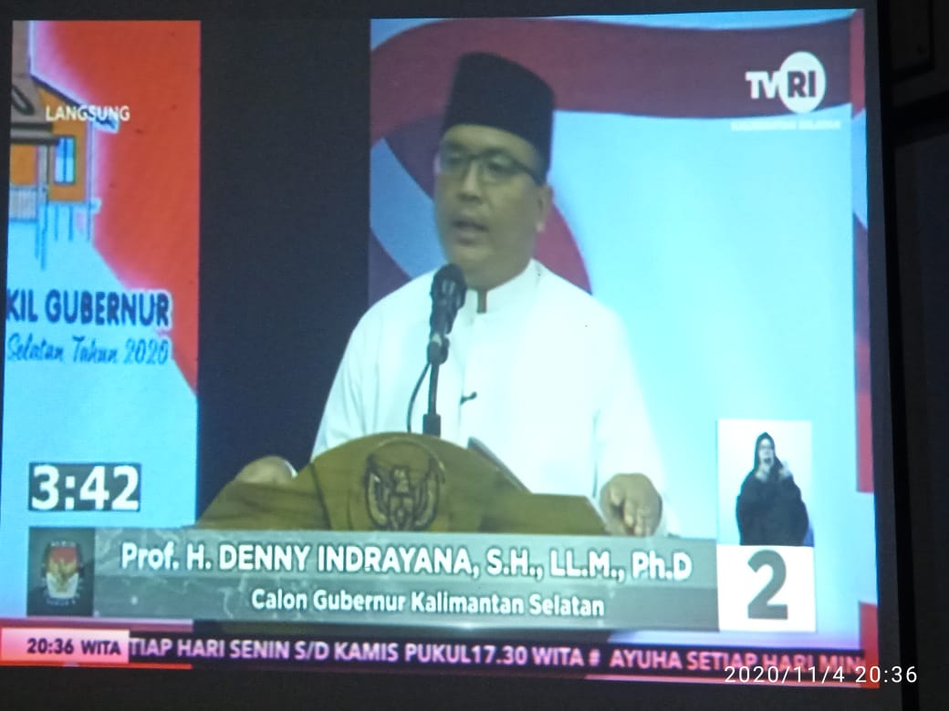 KANALKALIMANTAN. COM, BANJARMASIN – Dalam paparan visi dan misi saat debat Pilgub Kalsel, paslon Cagub nomor 2 Denny Indrayana mengatakan akan menghadirkan keadilan dan kepemimpinan amanah di Kalsel. Ia menilai, hilangnya dua hal tersebut menyebabkan berbagai ketimpangan dalam pembangunan di Banua.