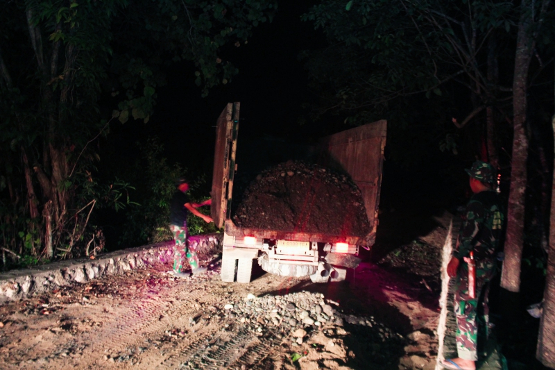 KANALKALIMANTAN.COM, AMUNTAI – Meski suasana gelap di malam hari tak menjadi penghalang anggota Satgas TNI Manunggal Membangun Desa (TMMD) ke-120 Kodim 1001/HSU-Balangan bersama warga menyelesaikan program kegiatan fisik di Desa Sungai Karias, Kecamatan Amuntai Tengah, Kabupaten Hulu Sungai Utara (HSU), Kalimantan Selatan.