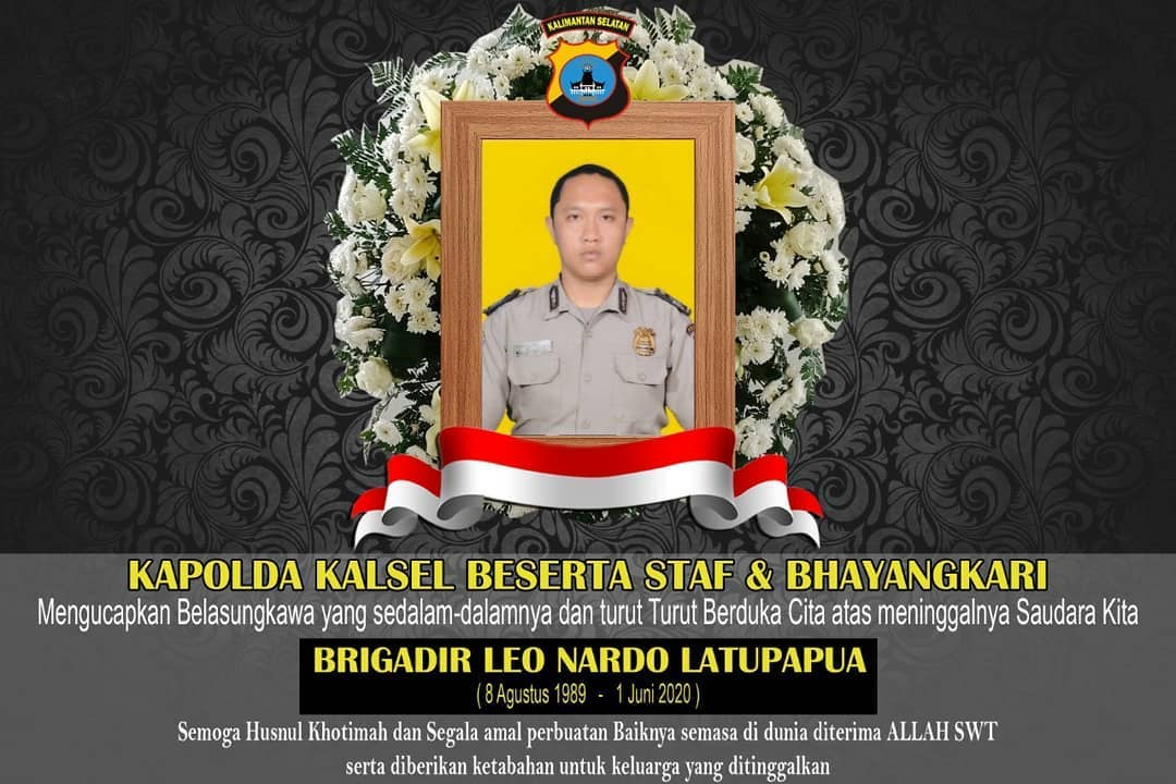 “Innalilahi Wa Innailaihi Rojiun, Kapolda Kalsel beserta Staf dan Bhayangkari turut beduka cita atas meninggalnya Brigadir Leo Nardo Latupapua Anggota Polri Polres Hulu Sungai Selatan Polda Kalsel.”