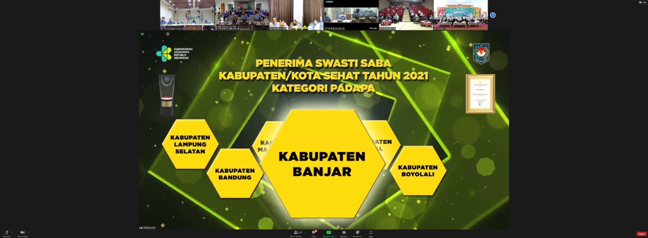 Hal tersebut diungkapkannya, ketika menerima Penghargaan Swasti Saba Kabupaten/Kota Sehat Tahun 2021 Kategori Padapa, secara virtual di Command Center Manis Martapura, Rabu (17/11/2021) pagi.