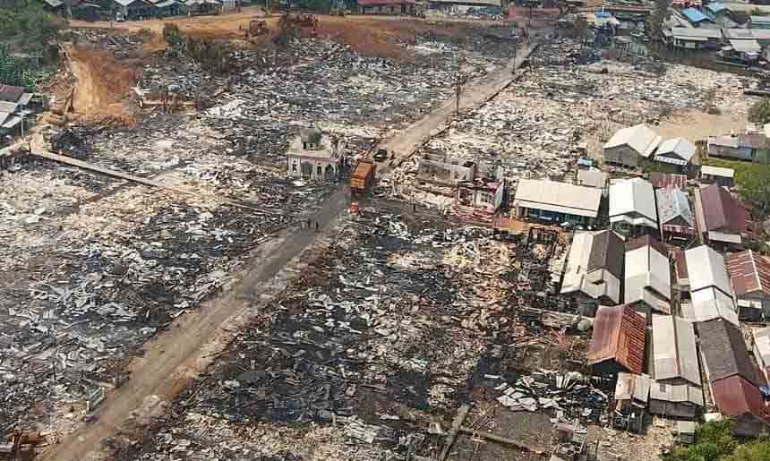 Saat itu, api menyala 5 jam lamanya dan terus merembet ke rumah-rumah warga. Api dengan cepat membesar karena bangunan rumah warga mayoritas berbahan material kayu. Kobaran api mulai bisa dikuasai pada Minggu 24 November 2019 sekitar pukul 03.48 Wita. Tercatat, api pada malam itu menghanguskan 200 rumah, dua los pasar, satu kantor Polsek, lima pintu Asrama Polisi dan satu Mushala, serta mengakibatkan 750 jiwa mengungsi. (Rico)