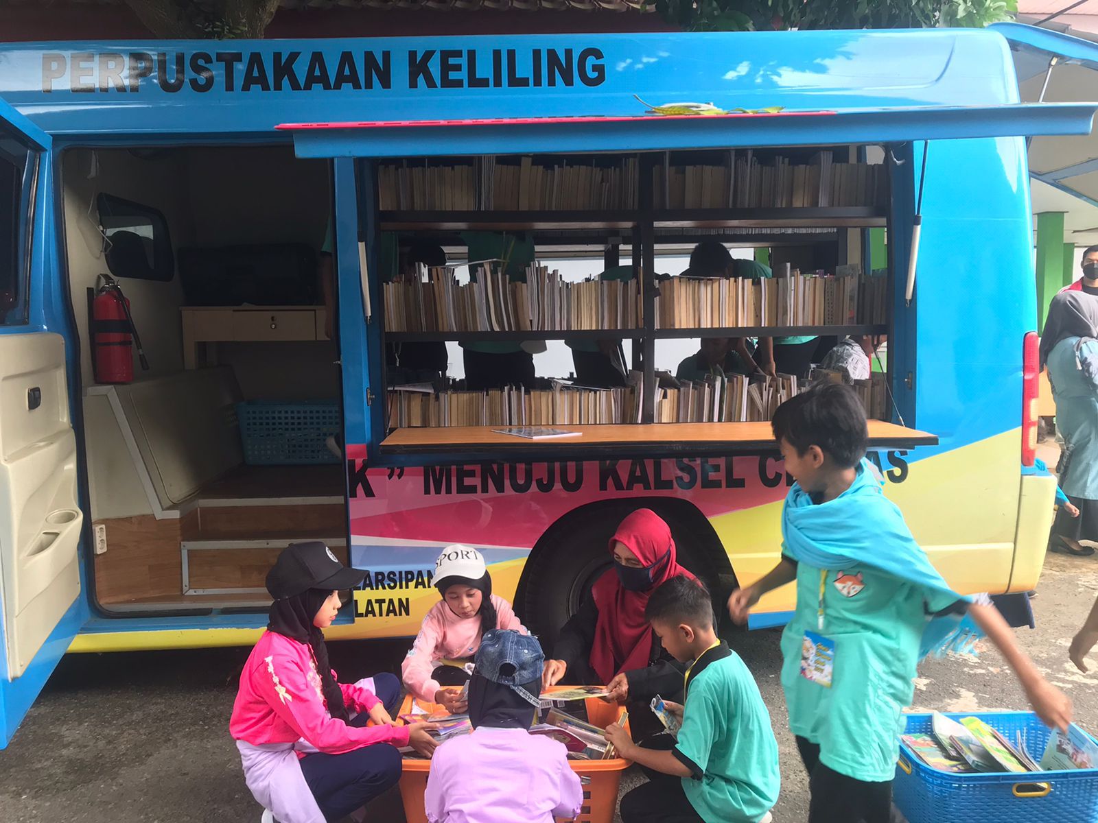 KANALKALIMANTAN.COM, BANJARBARU – Mengerahkan dua armada perpustakaan keliling, Dinas Perpustakaan dan Kearsipan (Dispersip) Provinsi Kalimantan Selatan (Kalsel) memeriahkan program Sehari Bersama Anak alias One Day for Children, di Panti Sosial Asuhan Anak (PSAA) Budi Mulia Banjarbaru, Jumat (5/11/2021).