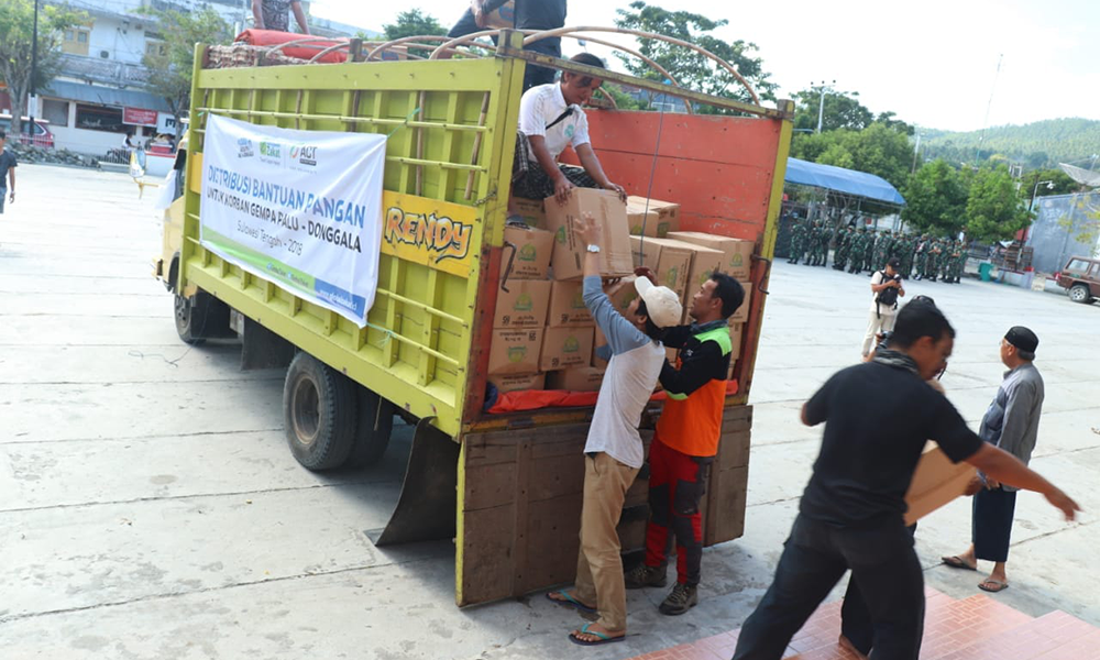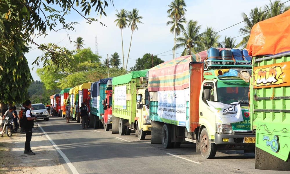 DONGGALA, Sehari semalam menempuh perjalanan darat, akhirnya konvoi tahap pertama truk berisi bantuan pangan, tiba di Palu dan Donggala. Berangkat sejak Rabu (3/10) dari Kabupaten Sidenreng Rappang (Sidrap), truk bantuan pangan tahap pertama dari Aksi Cepat Tanggap (ACT) melaju konvoi berjumlah 10 unit.