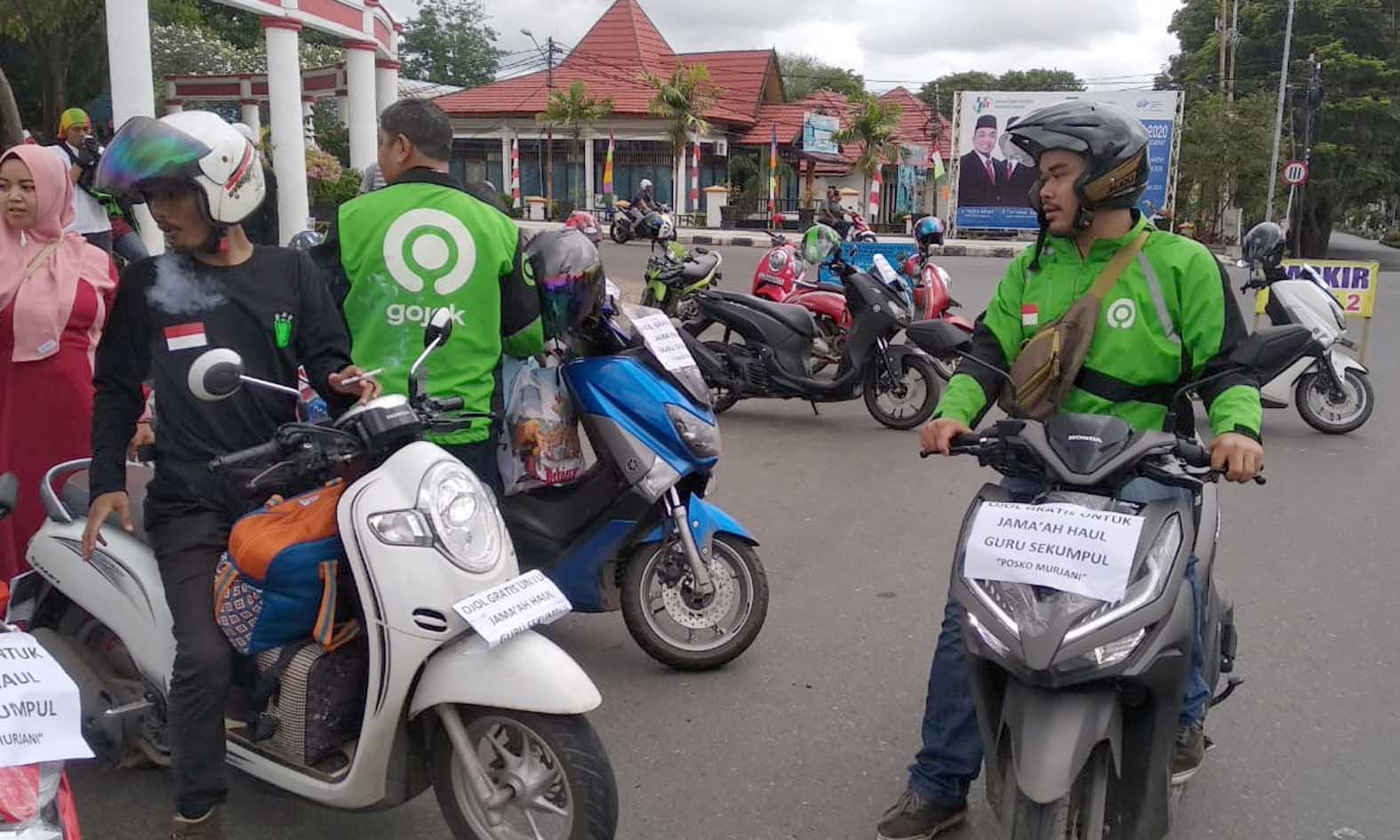 Sejak Pagi, Driver Ojol Gratis Bolak Balik Lapangan Murjani-Jalan Rahayu