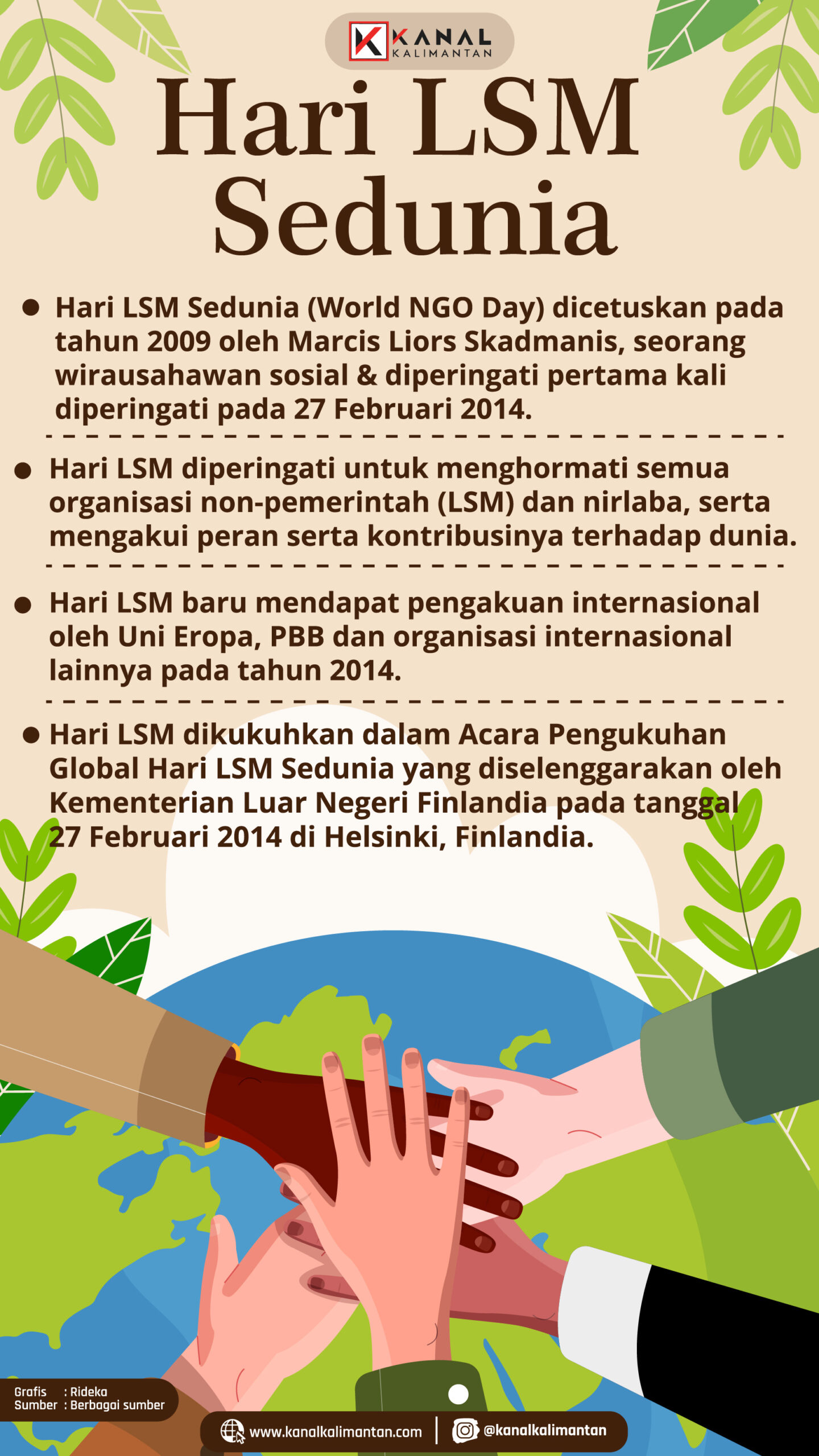 KANALKALIMANTAN.COM – Setiap tanggal 27 Februari diperingati sebagai Hari LSM Sedunia untuk menghargai kerja tanpa lelah dan penuh kepedulian yang dilakukan oleh organisasi non-pemerintah (LSM) di seluruh dunia dalam memerangi kemiskinan dan ketidaksetaraan.