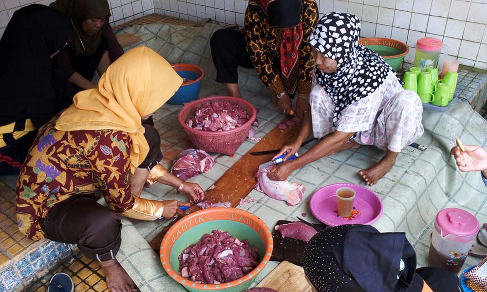 Darti bersama ibu-ibu lainnya bergotong-royong mengolah daging menjadi sajian lezat. Ada yang mengiris daging, membuat bumbu, memasak sayur, hingga menghidangkan es kelapa untuk tim. “Luar biasa sambutan warga di sini. Kerukunannya tinggi, tak hanya masakan daging, kami juga disuguhkan lauk ikan dan sayur,†ucap Head Of Marketing Communication ACT Kalsel Muhammad Ridha Wardhana.