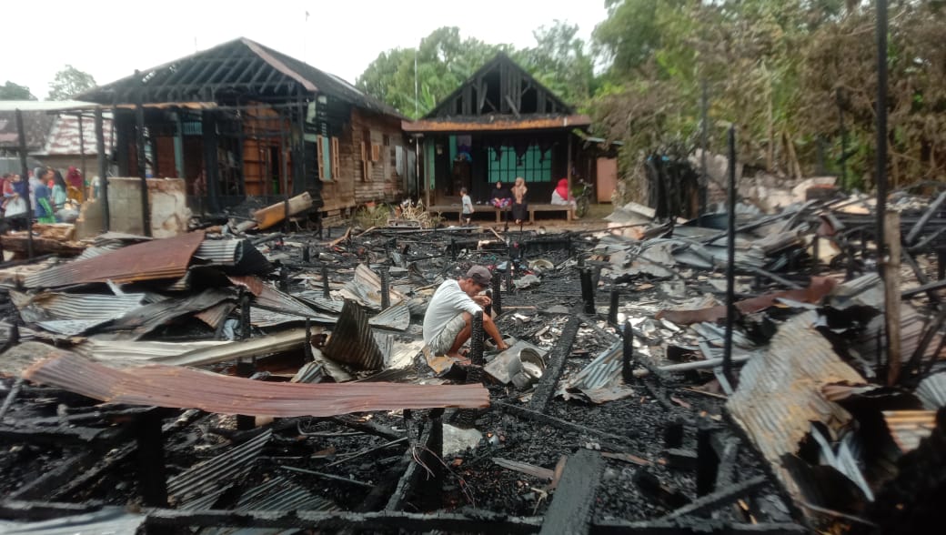 KANALKALIMANTAN.COM, BANJARBARU – Kesedihan masih terlihat di wajah korban kebakaran di RT 09 Kelurahan Sungai Tiung Kecamatan Cempaka. Api berkobar sekitar pukul 23.00 Wita pada Rabu (2/2/2022) malam menghanguskan empat rumah dan dua lainnya terbakar bagian depan.
