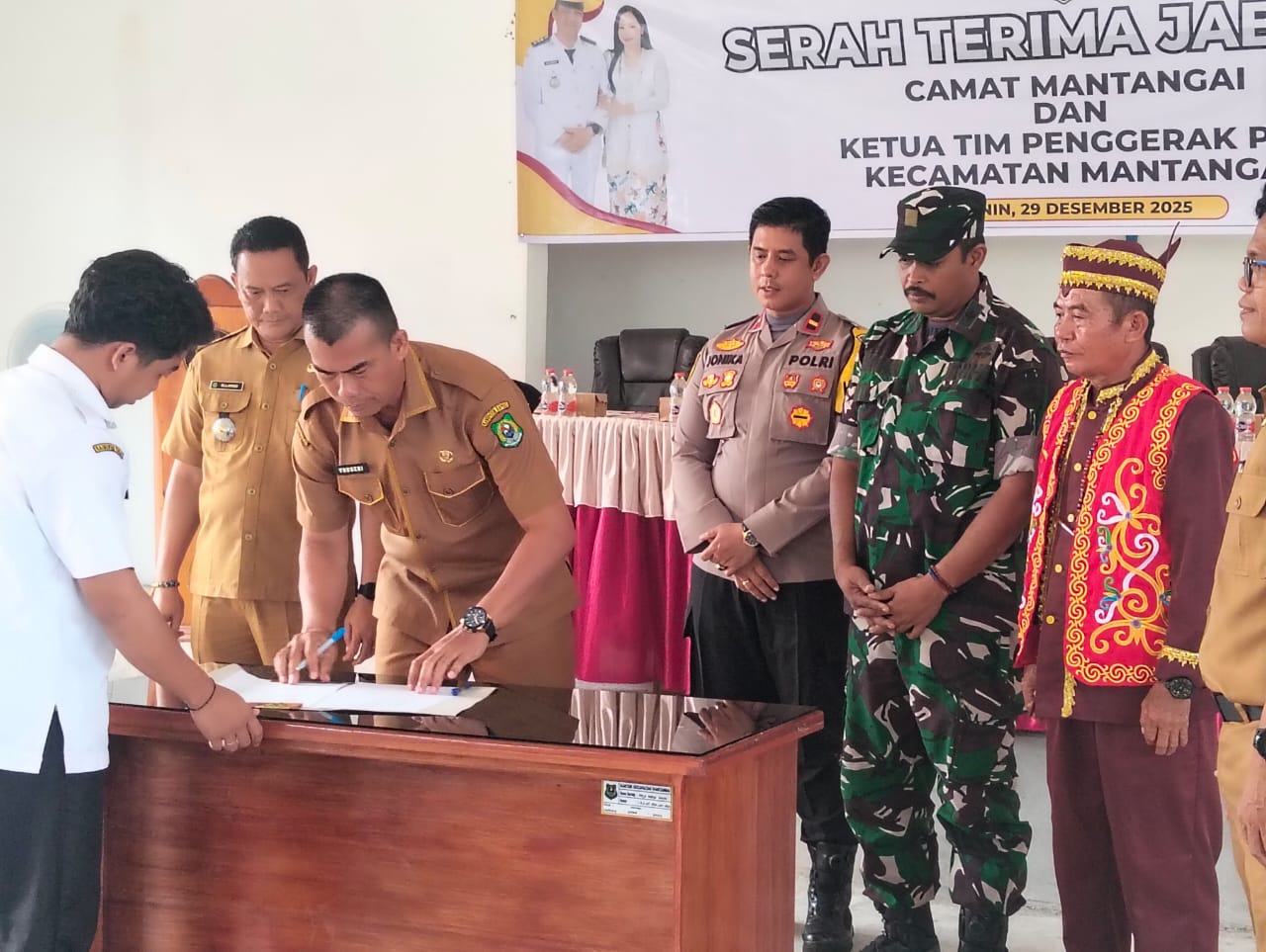KANALKALIMANTAN.COM, KUALA KAPUAS – Pemerintah Kecamatan Mantangai, Kabupaten Kapuas, menggelar acara Serah Terima Jabatan (Sertijab) Camat. Kegiatan Sertijab berlangsung di aula kantor Kecamatan Mantangai, Senin (29/12/2025) pagi.