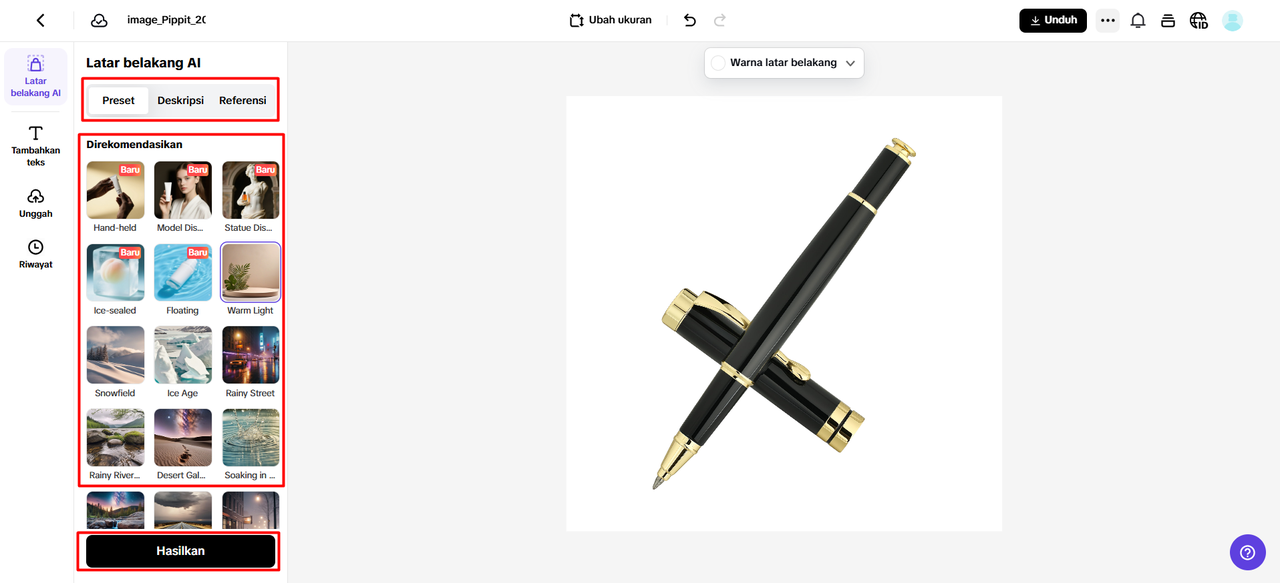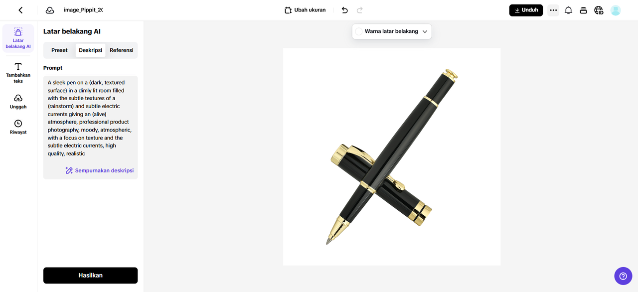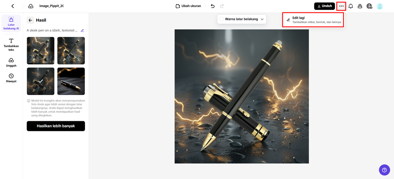 - Buka panel Studio Gambar lalu klik Latar AI untuk mulai mengedit.
