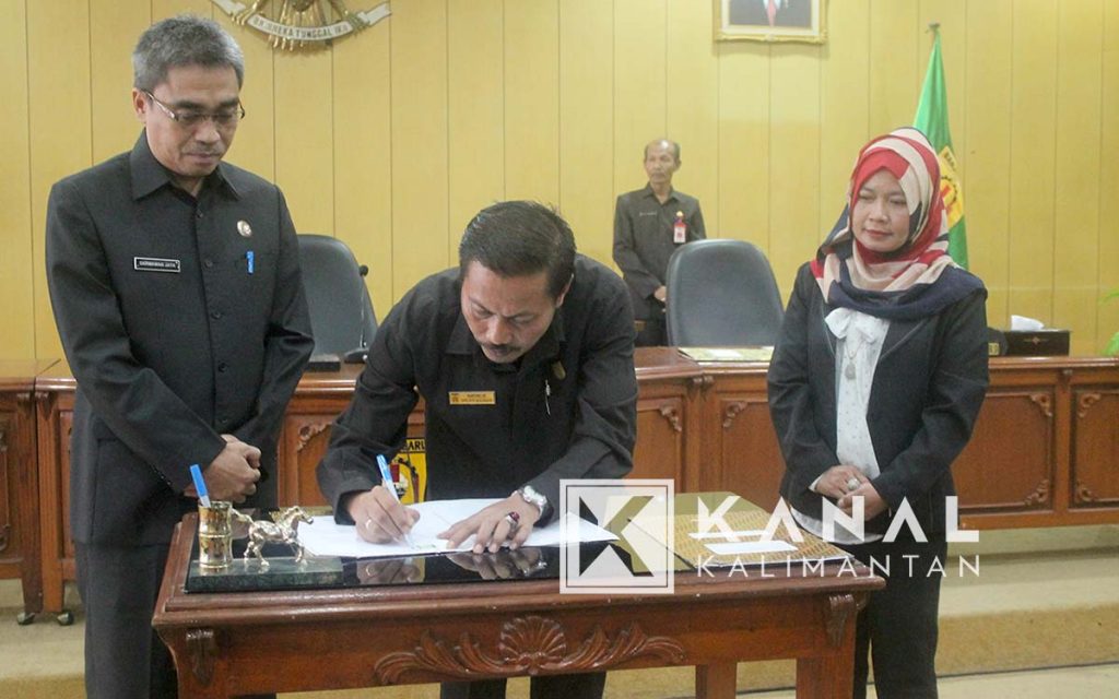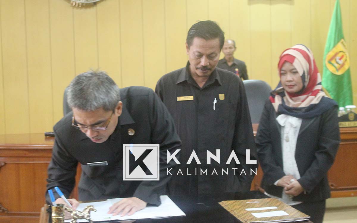Usai membacakan surat putusan DPRD, Wakil Walikota Banjarbaru Darmawan Jaya Setiawan dan unsur pimpinan DPRD melakukan penandatanganan surat keputusan dan kesepakatan bersama tentang penambahan Propemperda tahun 2018.