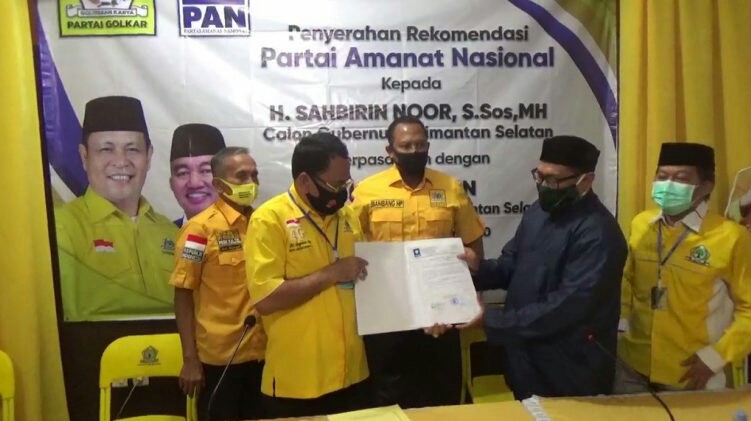 PAN yang notabene menjadi pendatang baru koalisi, langung ambil panggung begitu Golkar memilih H Muhidin (yang juga merupakan ketua DPW PAN Kalsel), sebagai pasangan Sahbirin (Ketua DPD I Golkar Kalsel). SK rekomendasi berisi persetujuan dan dukungan DPP PAN terhadap pasangan Calon H Sahbirin-H Muhidin untuk maju di Pilgub Kalsel ini bernomor PAN/A/Kpts/KU-SJ/06/II/2020. SK ini ditandatangani Ketua Umum Zulkifli Hasan dan Sekjen Eddy Soeparno.