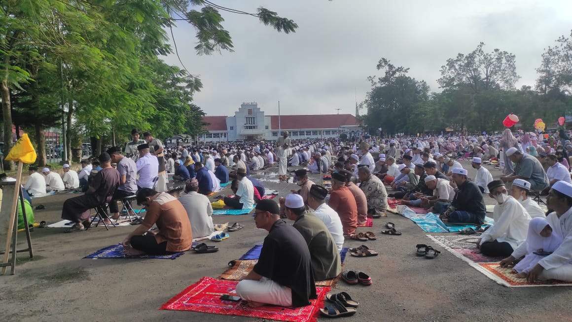Lapangan yang terletak di pusat kota seberang Balai Kota itu jadi tempat pelaksanaan ibadah shalat sunnah dua rakaat dan khutbah Idulfitri warga Muhammadiyah.