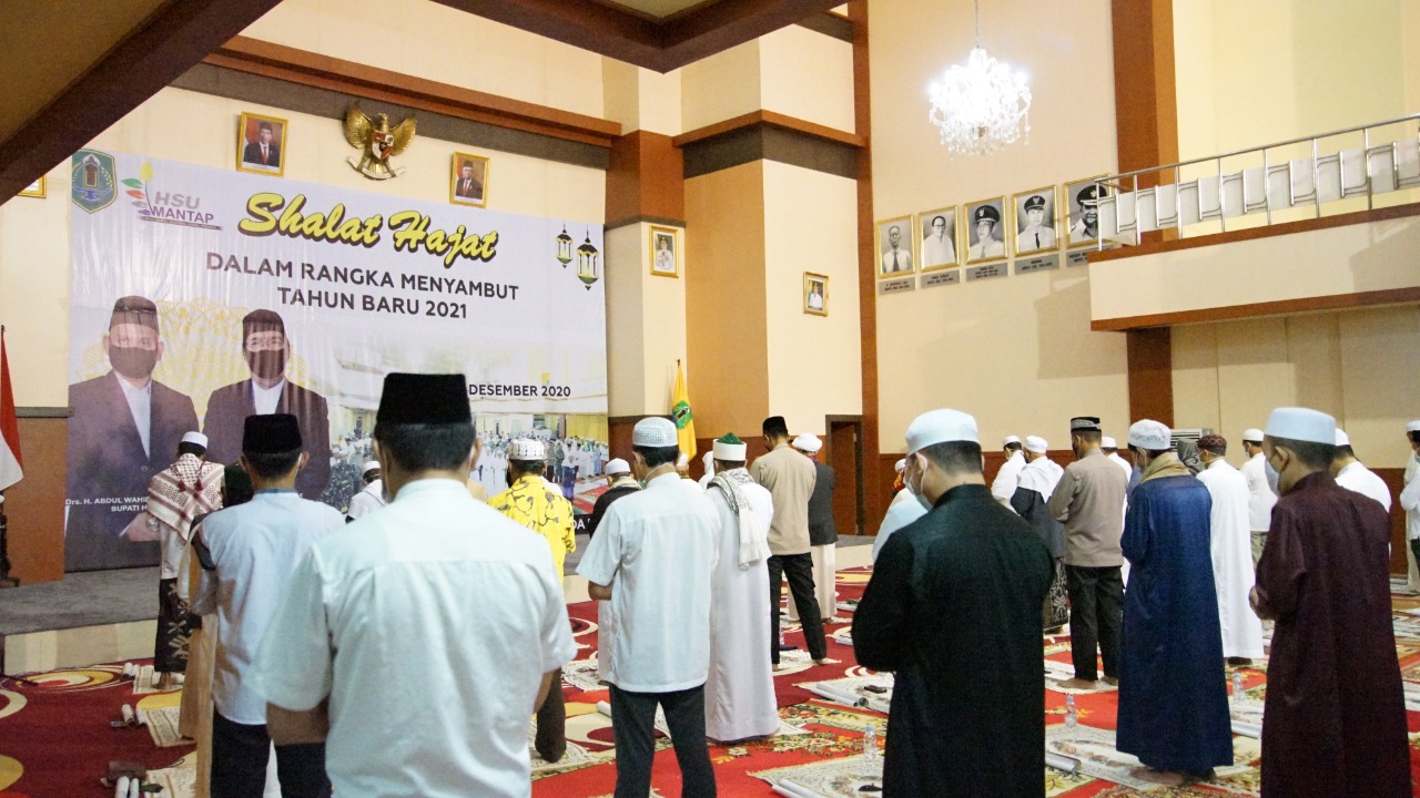 KANALKALIMANTAN.COM, AMUNTAI -Menyambut pergantian tahun, Pemerintah Kabupaten Hulu Sungai Utara (HSU) menggelar sholat hajat dan doa bersama di aula Dr KH Idham Chalid, Kamis (31/12/2020) malam.