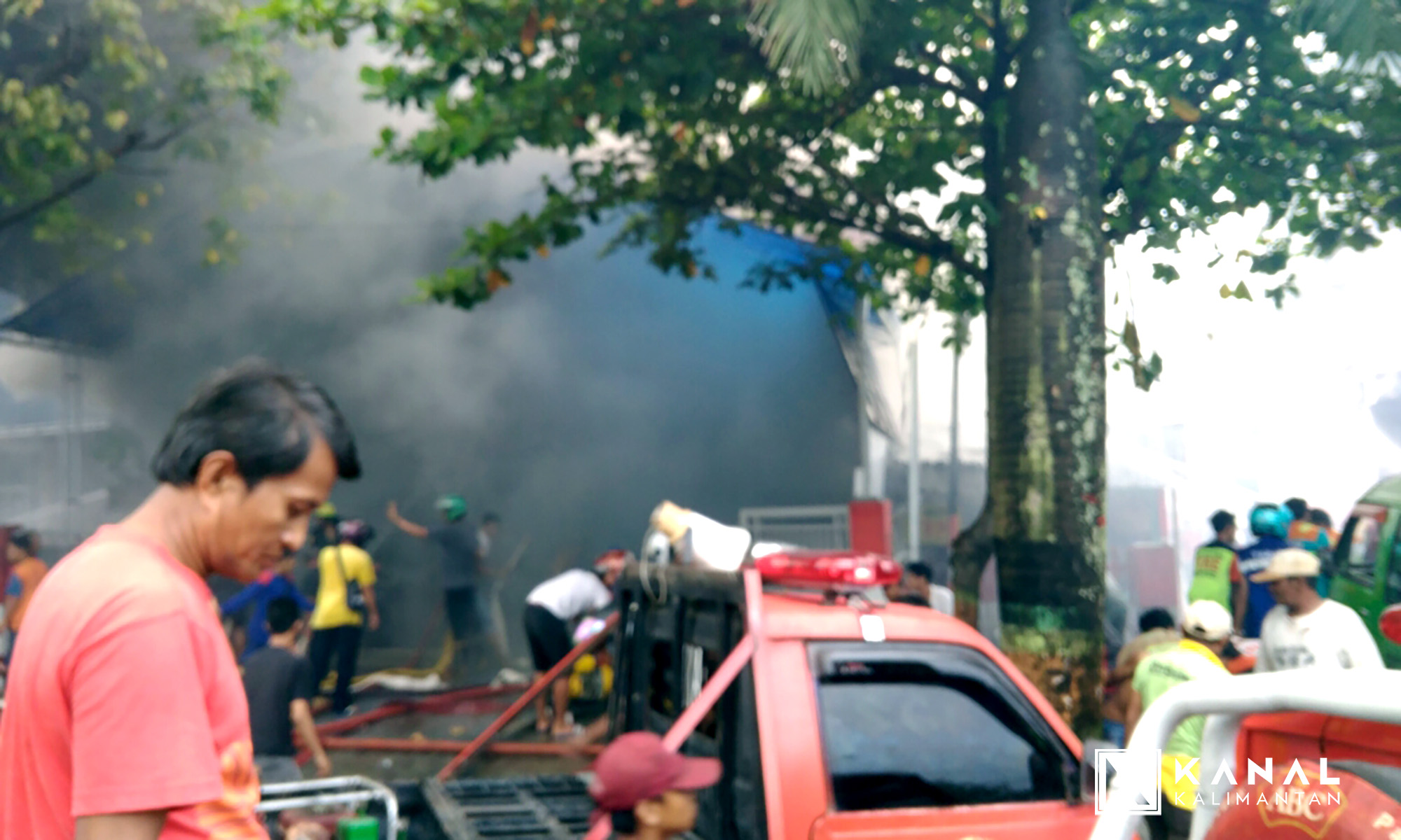 “Api muncul dari belakang gedung yang sudah mengeluarkan asap tebal,†kata warga ini. (ammar)