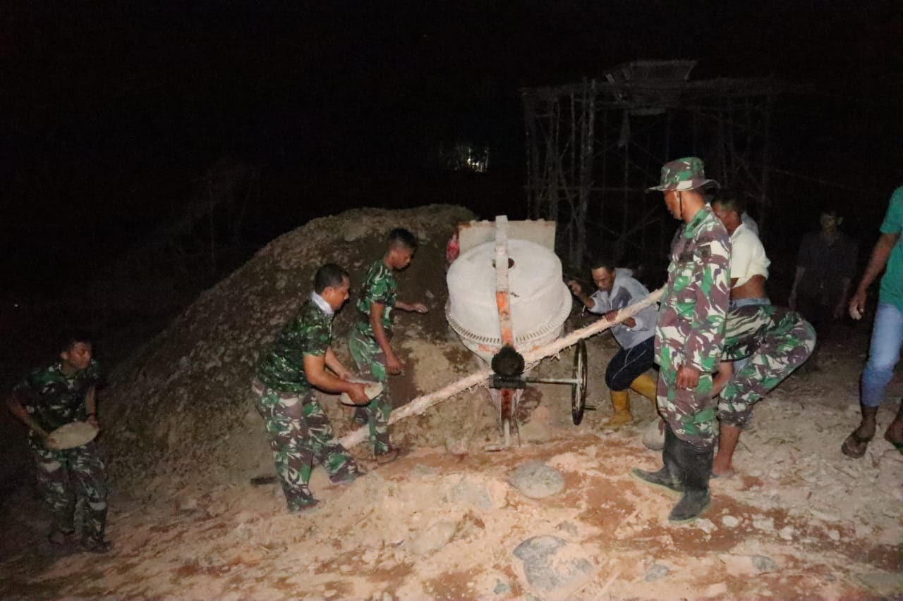 Siang Malam Bukan Halangan Tuntaskan TMMD ke-106 Di Desa Libaru Sungkai