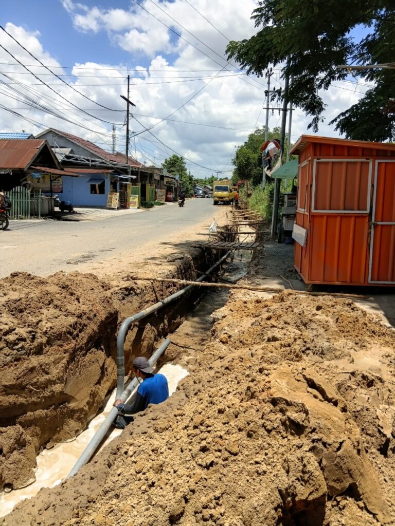 Pantauan Kanalkalimantan.com, para pekerja di lapangan tampak turun langsung memasang pipa saluran serta memasang papan kayu sebagai jembatan sementara agar warga dapat melintas ke permukiman.