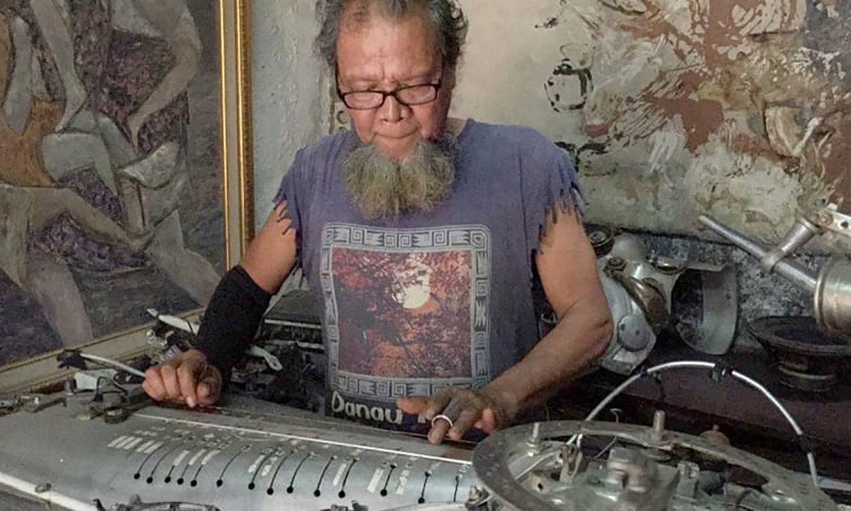 Instrumen musik yang sampai sekarang belum beri nama terpampang di depan workshop kerjanya. Berbobot sekitar 600 kilogram, instrumen musik ini ia rakit selama lima tahun.