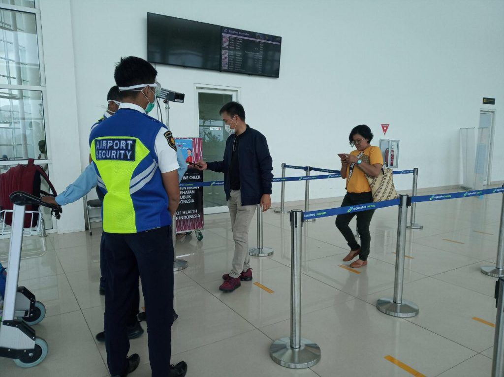 Manajemen Angkasa Pura I menghimbau partisipasi aktif dan kesadaran dari para pengguna jasa bandara untuk menerapkan pola hidup sehat, menjaga kebersihan, dan social distancing. Fasilitas untuk mendukung hal tersebut telah disediakan di gedung terminal seperti hand sanitizer, APD para karyawan yang bersentuhan langsung dengan para pengguna jasa, dan thermal scanner untuk mengecek suhu tubuh. (Kanalkalimantan.com/rico)