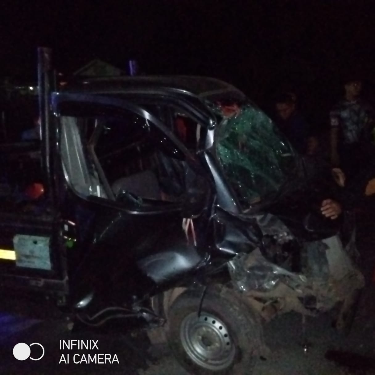 “Saat itu saya sedang berkendara perlahan di jalur kiri, tiba-tiba dari arah yang berlawananan mobil pikap itu dengan kecepatan yang tinggi, langsung menabrak bagian depan mobil saya,” ujar Mahdi, di lokasi kejadian.