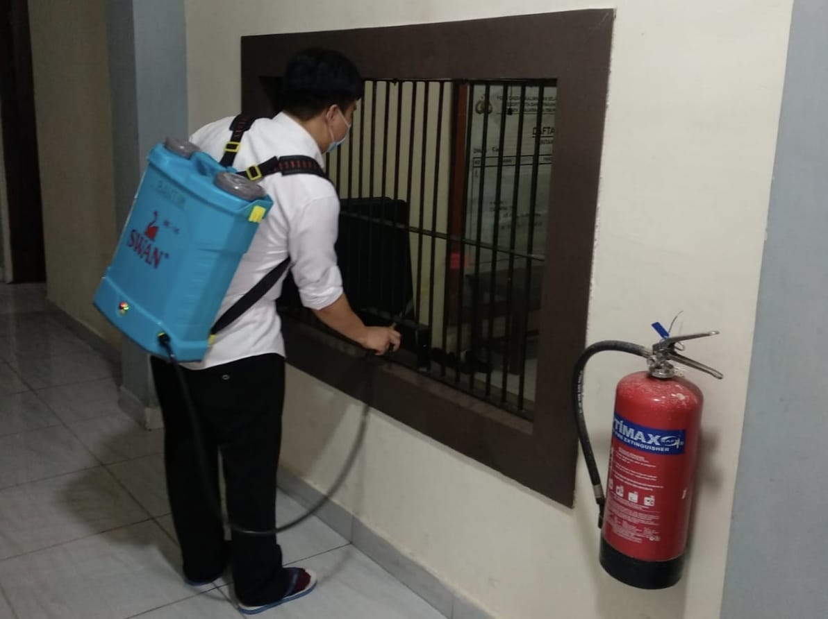 Sterilisasi Areal Perkantoran, Ruang Besuk Tahanan Disemprot Disinfektan