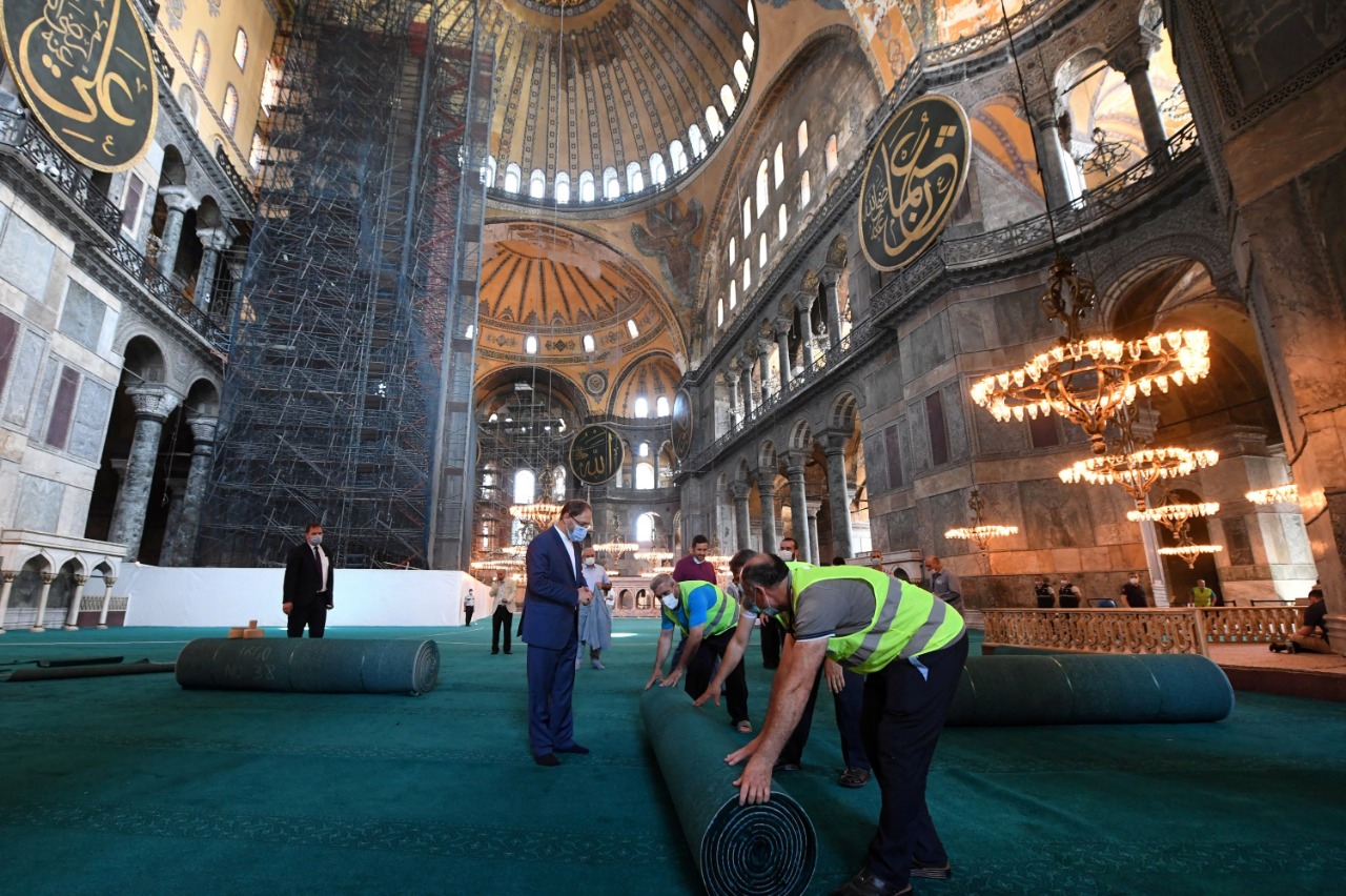 Pada 10 Juli lalu, pemerintah Turki terkesan mempercepat fungsi perubahan bangunan. Hanya dua pekan setelahnya, ornamen masjid seperti karpet, langsung disiapkan untuk menggelar sholat berjamaah.