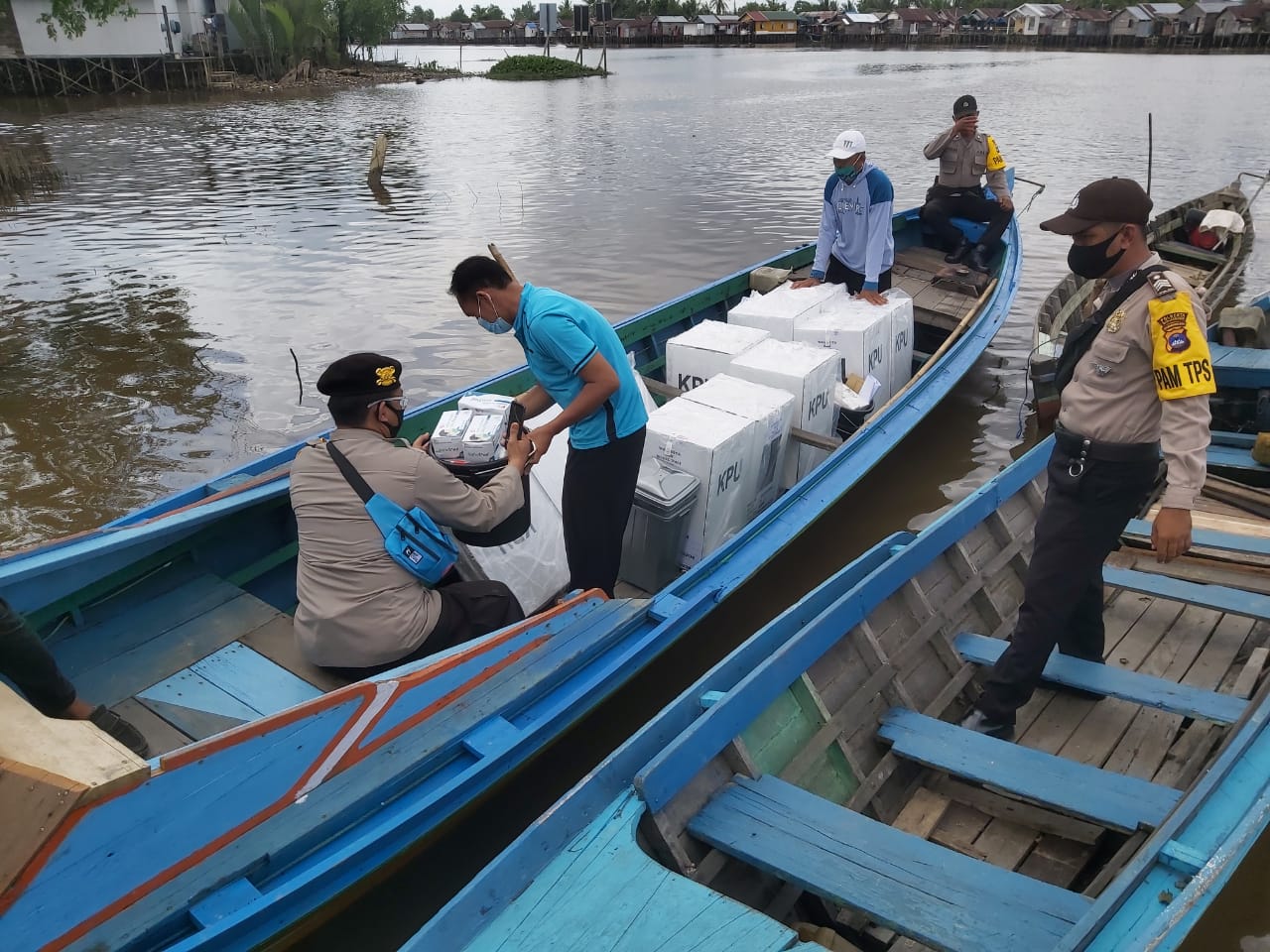 Seperti pendistribusian ke Pulau Bromo, Kelurahan Mantuil, Kecamatan Banjarmasin Selatan. Sejumlah petugas Polri, TNI, Linmas, hingga petugas KPU mengantarkan perangkat yang digunakan untuk pemungutan suara besok menggunakan dua unit klotok ke Pulau Bromo.
