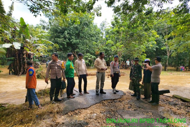 Anggota Unit Penanggulangan Bencana Swadaya bersama anggota Polsek dan Koramil Kecamatan Haruai juga sudah meninjau langsung lokasi putusnya jembatan di Desa Hayub.(antara)