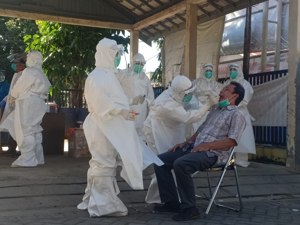 Usai formulir dinyatakan lengkap, satu per satu dipanggil untuk kemudian diambil sampel lendir di bagian mulut dan hidung menggunakan kapas dakron. Dalam hal ini, petugas kesehatan yang melakukan pengambil sampel dibentengi dengan Alat Pelindung Diri (APD) lengkap.