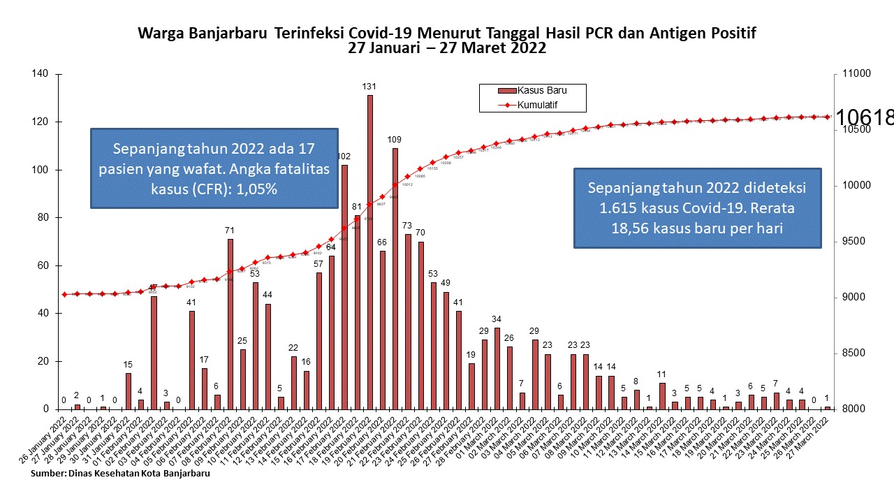 Penerapan PPKM Level 2 ini menyusul dari Inmendagri No 19 Tahun 2022 yang menyatakan Kota Banjarbaru menerapkan PPKM Level 2 dari 29 Maret 2022 hingga 11 April 2022 mendatang.
