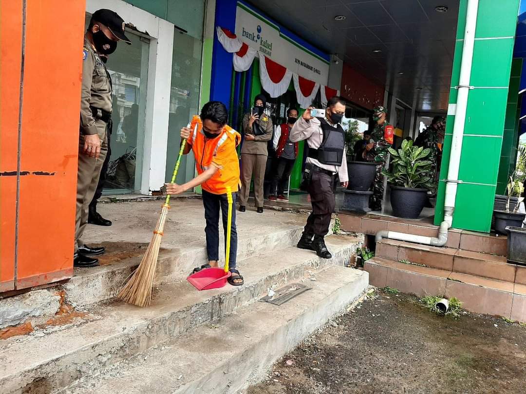 “Ketiga remaja tersebut kita suruh menyapu dengan menggunakan rompi pekerja kebersihan. Diharapkan menjadi efek jera, sehingga disiplin menggunakan masker,” kata Kasatpol PP.