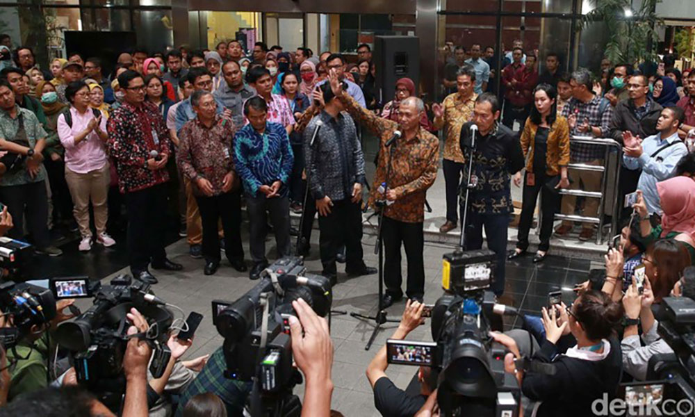 Sebelumnya, tiga Pimpinan KPK yakni Agus Rahardjo, Laode M Syarif, dan Saut Situmorang menggelar jumpa pers. Mereka menyerahkan tanggung jawab pengelolaan KPK kepada Jokowi. Ini karena mereka merasa tak dilibatkan dalam proses penggodokan revisi UU KPK yang sudah disetujui Jokowi.