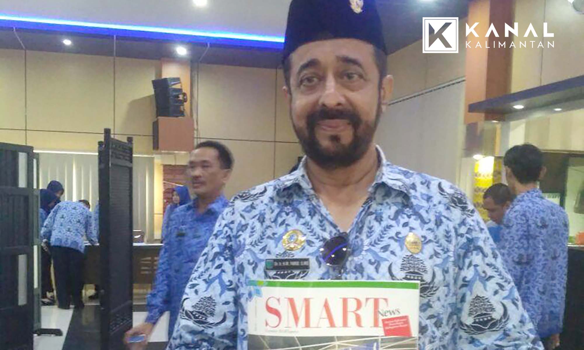 MARTAPURA, Kepala Dinas Komunikasi Informasi Statistik dan Persandian Kabupaten Banjar Dr Ir HM Farid Soufian MS pamerkan majalah Smart News kepada awak media. Dalam masa 2 tahun pemerintahan Bupati Banjar KH Khalilurrahman, majalah yang berisikan tentang berita perkembangan dan info seputar Kabupaten Banjar dipamerkan saat penandatangan kerjasama Diskominfo Banjar dengan Badan Pusat Statistik (BPS) Banjar di aula Barakat Pemkab Banjar, Senin (19/2).