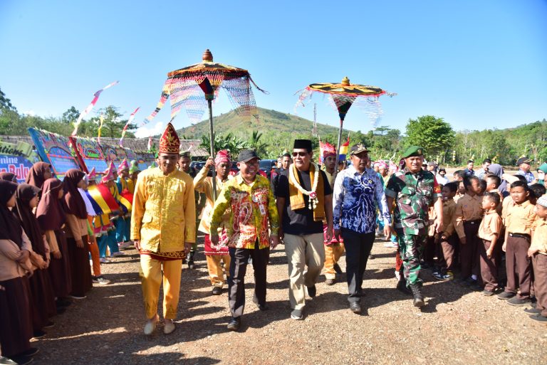 Setelah selesai peresmian, kedekatan dengan masyarakat ditunjukkan memanggil empat anak perempuan dan empat orangtua untuk maju ke panggung.