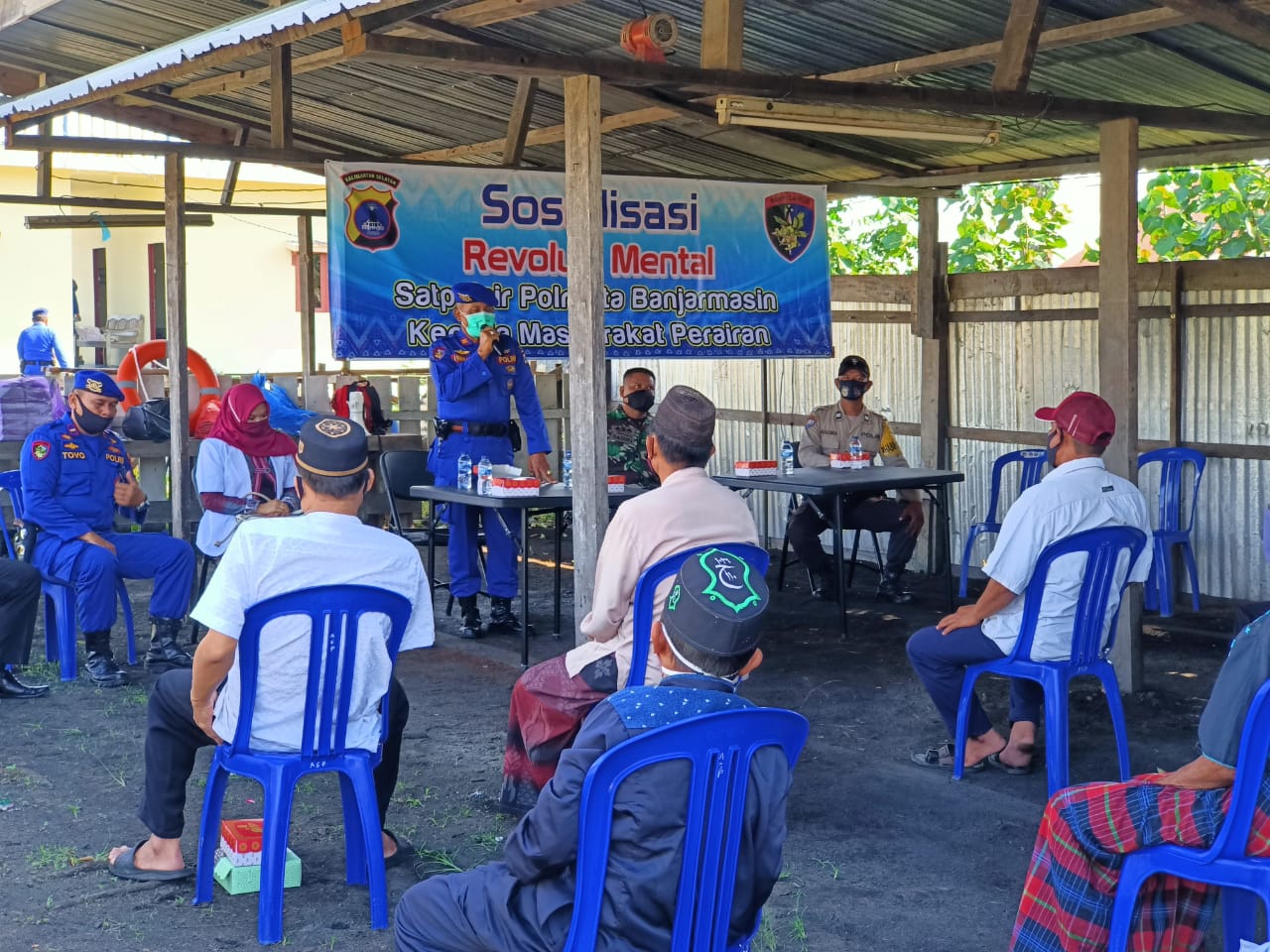 KANALKALIMANTAN.COM, BANJARMASIN – Polresta Banjarmasin melalui Satuan Polair bersama urusan kesehatan sosialisasi adaptasi kebiasaan baru kepada masyarakat di Kelurahan Mantuil, Kecamatan Banjarmasin Selatan, Kota Banjarmasin, Rabu (29/7/2020).